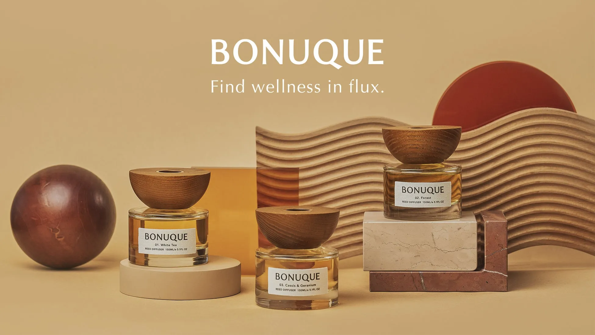 2024年春にデビューしたBONUQUEは、「Find wellness in flux. ーゆらぐ⾃分も、愛おしくなる。」をコンセプトに掲げるセルフケアブランドです。現代社会で私たちは常に変化し、心も体もゆらぎがち。そんな「ゆらぐ自分」を否定するのではなく、むしろ愛おしく受け入れる。BONUQUEは、そんな心の豊かさを育むプロダクトを届けています。リードディフューザーをはじめ、日々の暮らしに寄り添うアイテムたちは、忙しい毎日の中に「ふと我に返る」優しい瞬間を与えてくれるでしょう。